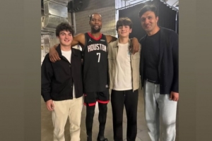 用什么词形容这气质?杜兰特赛后转发和帕楚利亚及其儿子们的合影